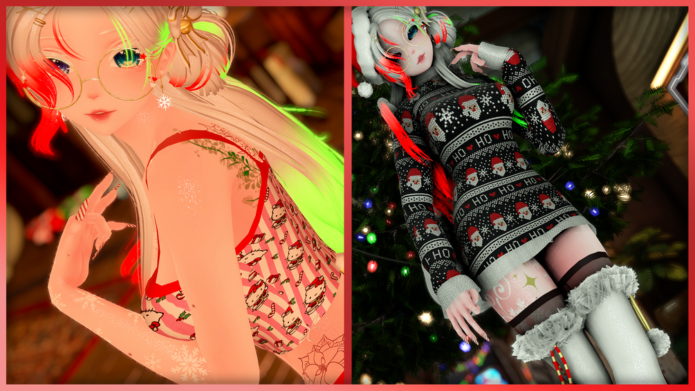 ♡ Accessories - Collar, Arm Ribbons, Stomach Ribbon, Booba CandyCane, Garter, PomPoms, Charms, Snowflake Earrings, Santa Hat, Glasses, Thigh Highs + More!
